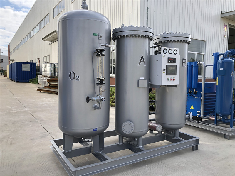 變壓吸附制氧裝置以潔凈的壓縮空氣為原料,采用高品質(zhì)的沸石分子篩作為吸附劑,在一定的壓力下,從空氣中制取氧氣。經(jīng)過純化干燥的壓縮空氣,在吸附器中進(jìn)行加壓吸附、減壓脫附。由于空氣動(dòng)力學(xué)效應(yīng),氮在沸石分子篩微孔中擴(kuò)散速率遠(yuǎn)大于氧,氮被沸石分子篩優(yōu)先吸附,氧在氣相中被富集起來(lái),形成成品氧氣。然后經(jīng)減壓至常壓,吸附劑脫附所吸附的氮?dú)獾入s質(zhì),實(shí)現(xiàn)再生。一般在系統(tǒng)中設(shè)置兩個(gè)吸附塔,一塔吸附產(chǎn)氧,另一塔脫附再生,通過PLC程序控制器控制氣動(dòng)閥的啟閉,使兩塔交替循環(huán),從而取得純度較高的氧氣(93%±3%)。
