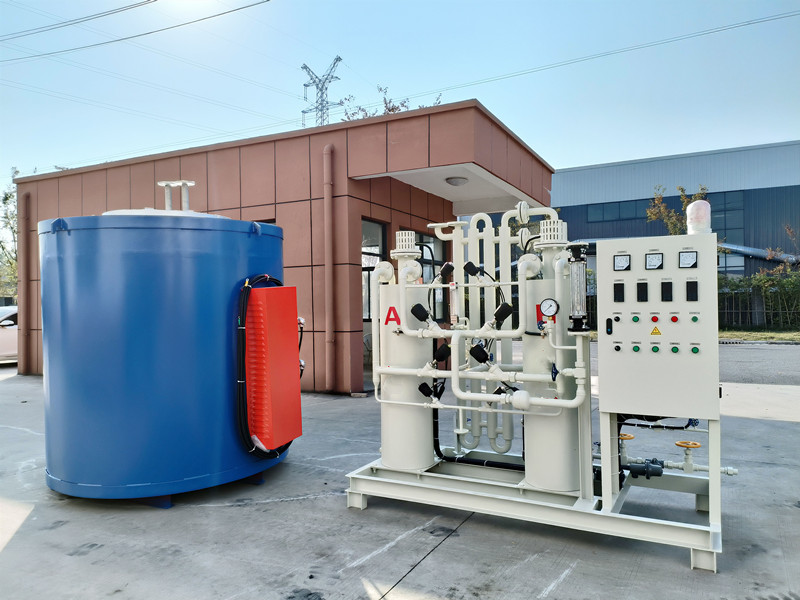 氨分解制氫是以液氨為原料,在鎳催化劑的作用下,加熱800℃-850℃分解得到含氫75%,含氮25%的氫氮混合氣體。分解率可以達(dá)到99.9%。露點(diǎn)為-10℃。