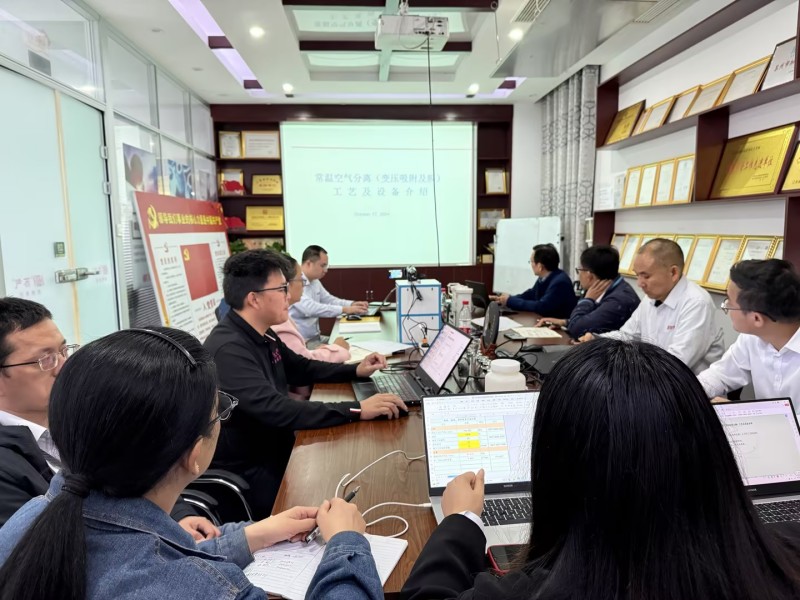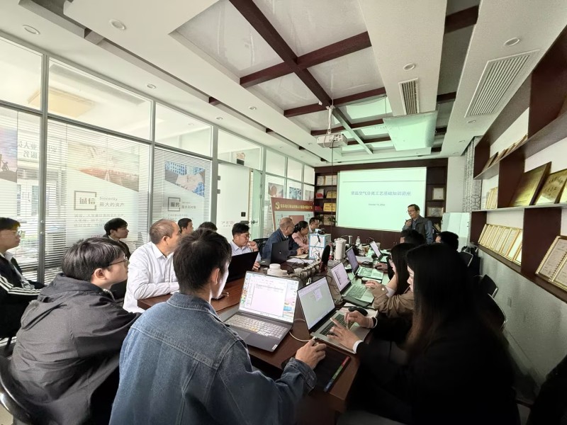 培訓中,沈老師簡要介紹了本次培訓的目的,并結合氣體設備市場,重點介紹了常溫空氣分離工藝基礎知識、常溫空氣分離(變壓吸附及膜)工藝及設備、碳分子篩及變壓吸附制氮技術、壓縮空氣膜干燥工藝及設備等知識,通過深入淺出的現(xiàn)場講解和提問方式,鼓勵學員們主動思考、積極發(fā)言。